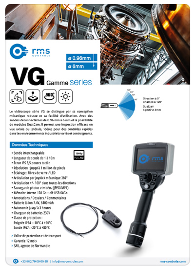 Les caractéristiques techniques et les accessoires du vidéoscope VG series :